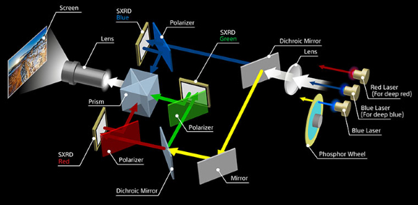 Fénymodulátor: 3 x 0,74”-es 4K SXRD panel