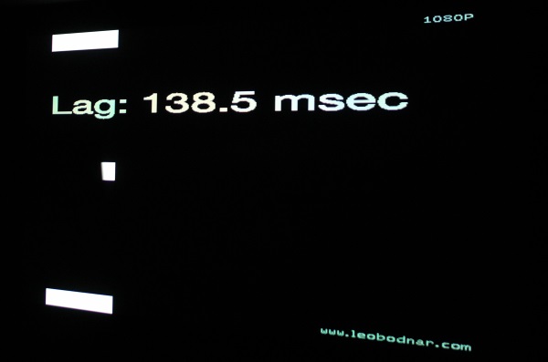 Fentebb említettük, hogy van egy késleltetés-csökkentő opció is a készülékben (On vagy Off), ezért mindkét állapotban megmértük a késleltetés értékét. A méréshez a Leo Bodnar féle lag-mérő eszközt használtuk, és a szokásoknak megfelelően a kép vízszintes középvonalában mértünk.