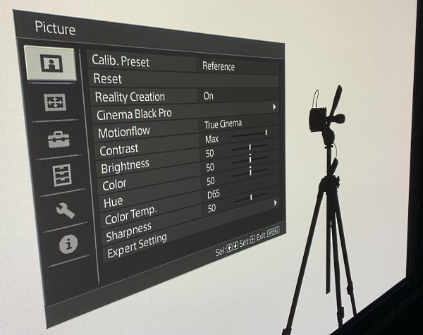 A Reference kiválasztásakor a Cinema Black Pro alatt a Contrast Enhancer ki van kapcsolva, a Lamp Control pedig High állásban van. Az Expert Setting alatt minden beállítás kikapcsolt állapotot vesz fel, a színtér (Color Space) természetesen a BT.709.